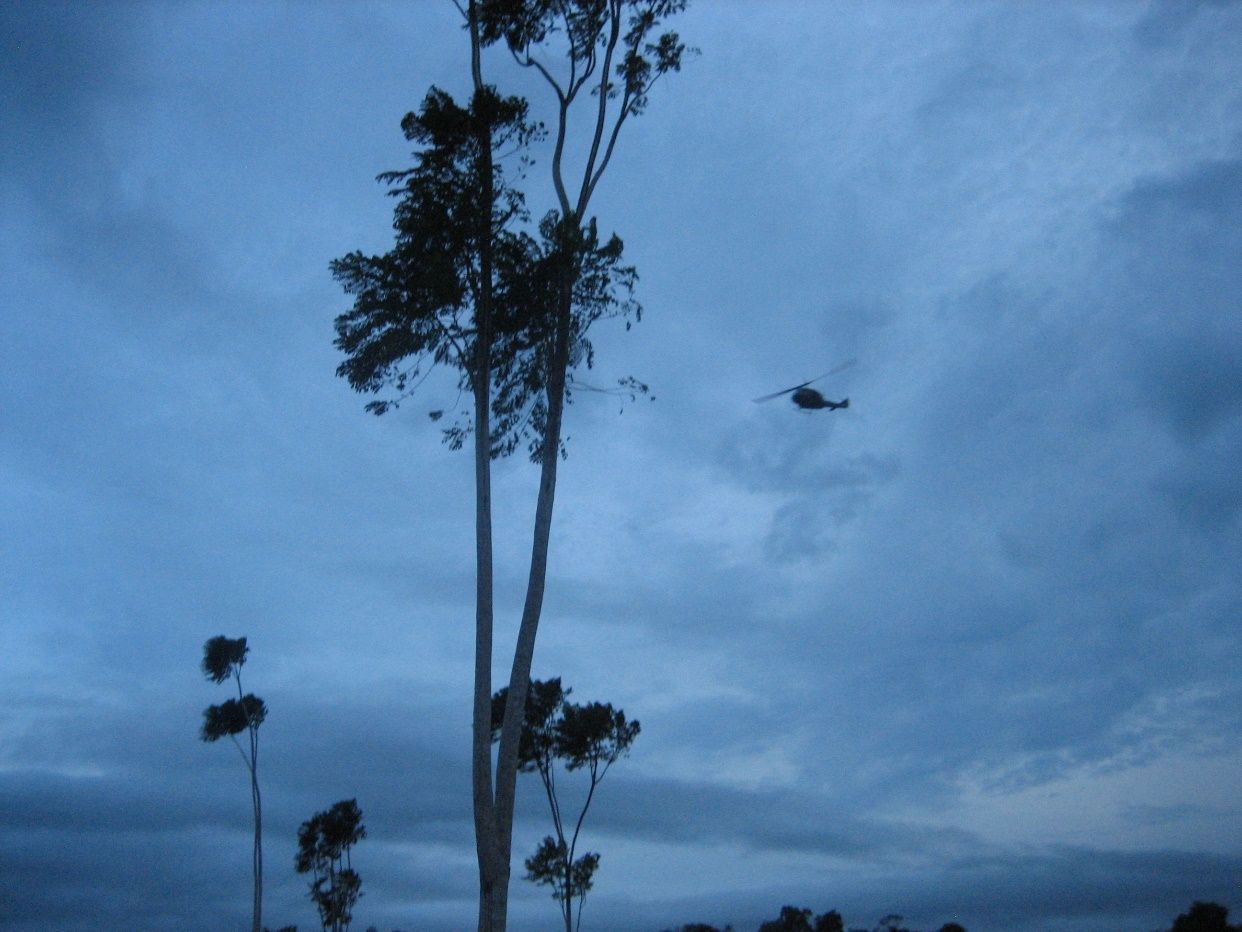 Posteriormente llegan los helicópteros y proceden a hacer varios ametrallamientos, luego continúan los aviones lanzando varias bombas, para dar paso a que helicópteros aterricen y descarguen tropas del Ejército Nacional, terminando este hecho a la madrugada del lunes 25 de abril a la 1:30 a.m.