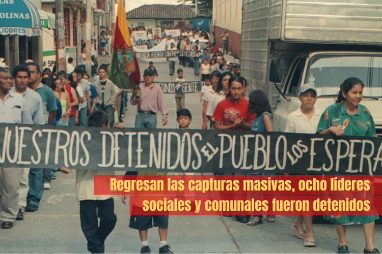 Luego del anuncio de las comunidades de la captura de dos lideres sociales; se estableció que el número de capturados asciende a ocho, hasta el momento. A la Captura de Ramón Contreras, Líder comunitario y social, se suma la captura de otros seis líderes.