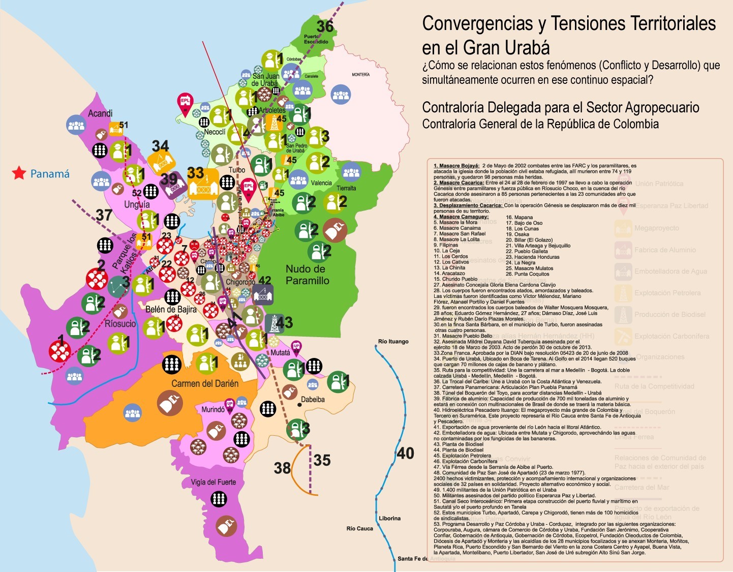 En la región de Urabá se desarrolló un modelo de acumulación por desposesión cuyas principales características son: Despojo de Tierras, legalización de la expropiación de las tierras y la naturaleza, apropiación fraudulenta de recursos del Estado, construcción de infraestructura para la exportación, nueva proletarización, liquidación de organizaciones y movimientos sociales. Implementado por sectores empresariales nacionales, extranjeros y que contó con la participación o la anuencia del Estado (Informe entregado a la Comisión de Esclarecimiento de la Verdad 2019).
