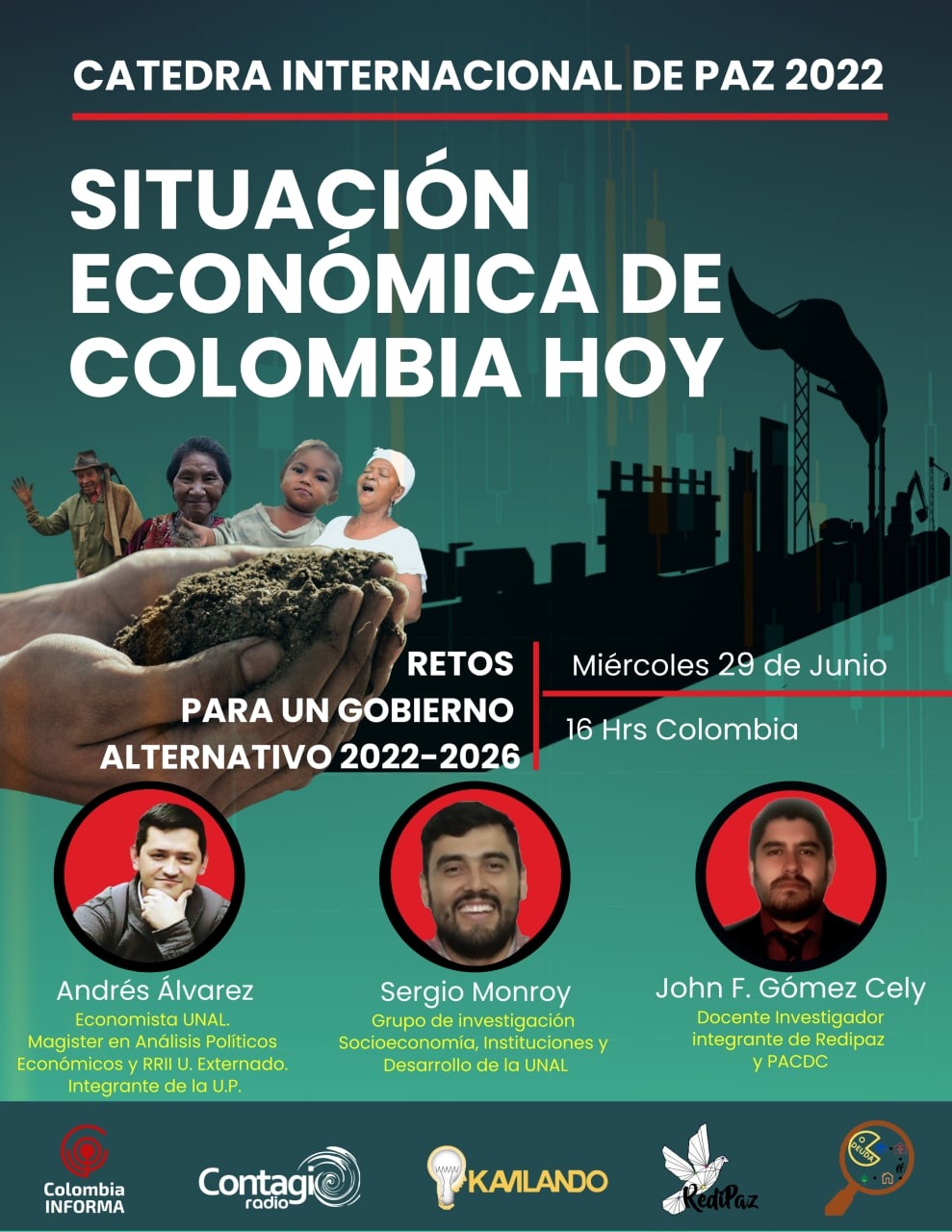 Miércoles 29 de junio, 16H Colombia. Invitados: Andrés Alvarez Economista UNAL, Magister U. Externado. Integrante de la U.P.. Sergio Monrroy Gupo de Investigación UNAL. John Gómez Celi Docente Investigador, integrante de REDIPAZ y PACDC. En vivo por: https://www.facebook.com/grupo.kavilando