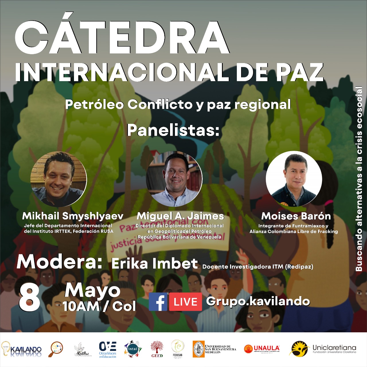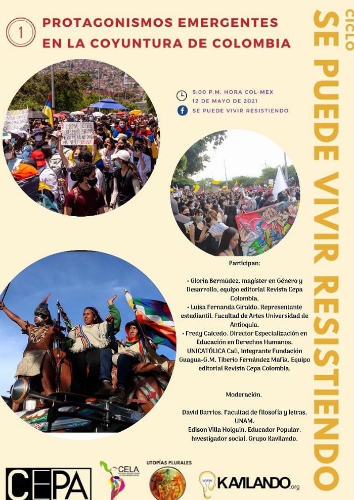 Sabado 15 de mayo. 15H Col. Personas Invitadas: Olga Marlene Campo, Maestra (Popayán) Luisa Elvira Estrada Maestra (Itagui) Francy Elena Molina, Educadora Popular UPN Bogotá. En Vivo por: https://www.facebook.com/grupo.kavilando