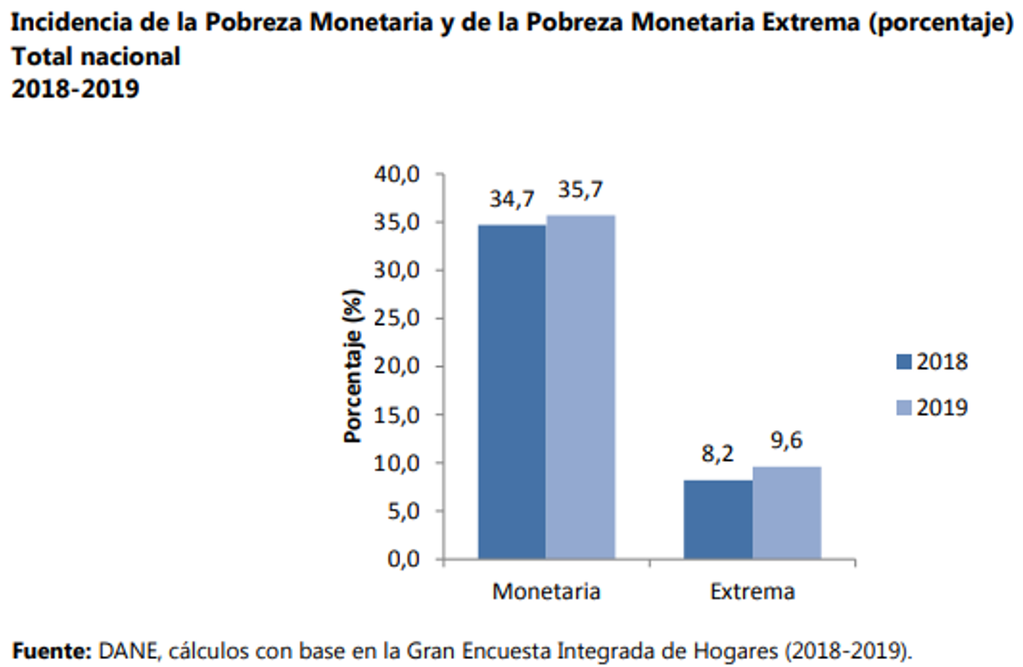 Entre 2018 y 2019, 662.000 personas entraron a la pobreza monetaria y 729.000 personas entraron a la pobreza monetaria extrema.