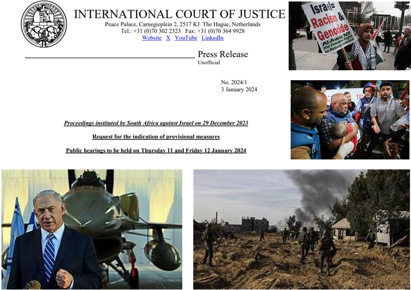 La Corte Internacional de Justicia, también conocida como la Corte Mundial de Justicia, llevará a cabo las audiencias públicas para conocer el caso de Sudáfrica contra el Estado de Israel el 11 y el 12 de enero de 2024. La ICSGP llama a las organizaciones que secundan el llamado a sumarse esta semana a actos de apoyo en La Haya y a organizar manifestaciones y vigilias locales, incluyendo expresiones de gratitud y solidaridad ante las embajadas de Sudáfrica. Los detalles acerca de las audiencias y cómo verla en directo se encuentran en este enlace (en inglés): https://www.icj-cij.org/sites/default/files/case-related/192/192-20240103-pre-01-00en.pdf