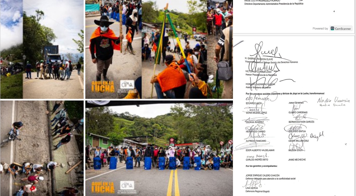Tras cinco días de movilizaciones en todo el país lideradas por una articulación de organizaciones populares denominada "Aquí en la Lucha", el Gobierno y las organizaciones sociales alcanzan un acuerdo: instalarán mesas de diálogo regionales y cesarán los bloqueos y concentraciones (leer acta de acuerdo).