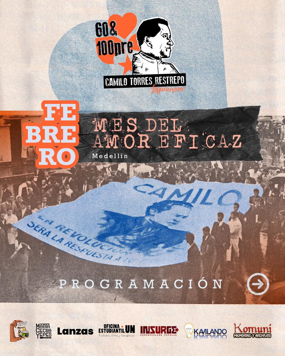 Febrero es memoria, compromiso y acción. Conmemoramos a Camilo Torres Restrepo y su Amor Eficaz como horizonte ético y político. Un mes para encontrarnos, recordar su legado y reafirmar la lucha junto a lxs oprimidxs. Camilo vive.