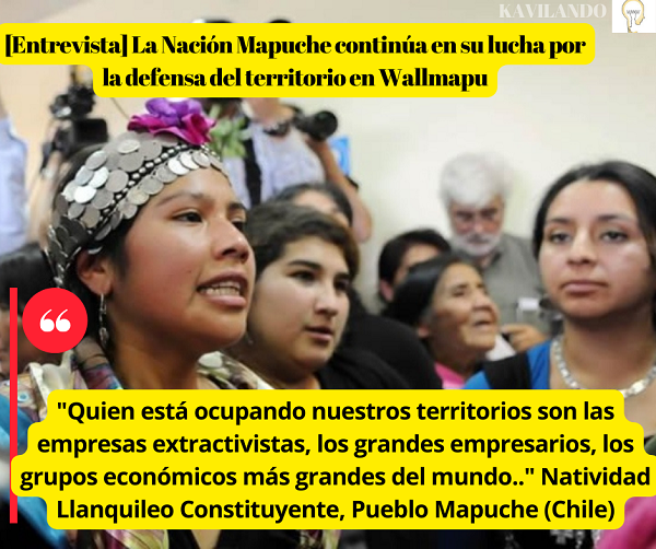 En una entrevista producida entre el Grupo de Investigación Kavilando y la Agencia de comunicación de los pueblos Colombia Informa, la constituyente mapuche y Vicepresidenta adjunta de la Convención Constitucional de Chile, Natividad Llanquileo, profundiza en la lucha de ese pueblo originario. Como abogada y defensora de Derechos Humanos considera que no hay otra alternativa que seguir luchando, ante la ocupación de los territorios por las empresas extractivistas.