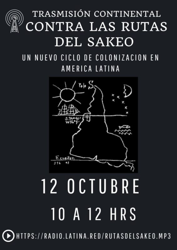 Ante la avanzada extractivista en America del Sur, este 12 de octubre queremos conmemorar las resistencias a un proceso de colonización, que es parte de nuestra historia, pero también de nuestro presente, mediante una transmisión especial, de 2 horas, sobre el avance de las rutas del sakeo en Latinoamerica y la resistencia de los territorios organizados ante la infraestructura de la devastación.
