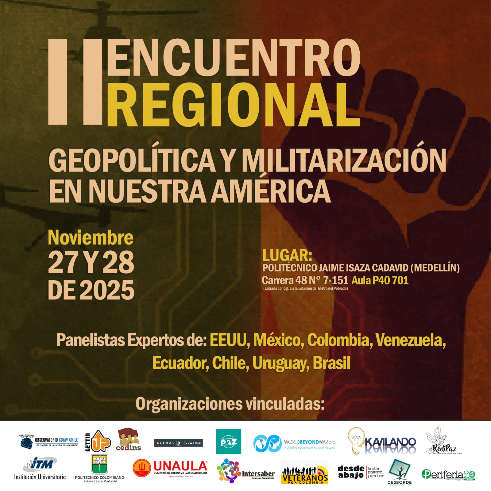 (Invitación) II Encuentro Regional sobre Geopolítica y Militarización en Nuestra América. Seguridad, Tecnologías del Control y Alternativas Sociales